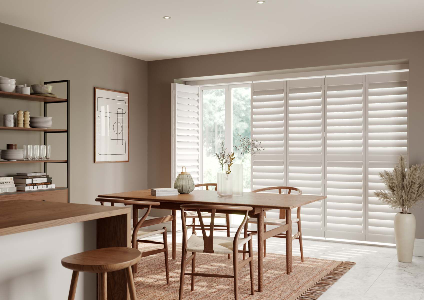 - Make the most of natural light – Shutters allow you to control and direct sunlight, meaning you can often switch off electric lights during the day.